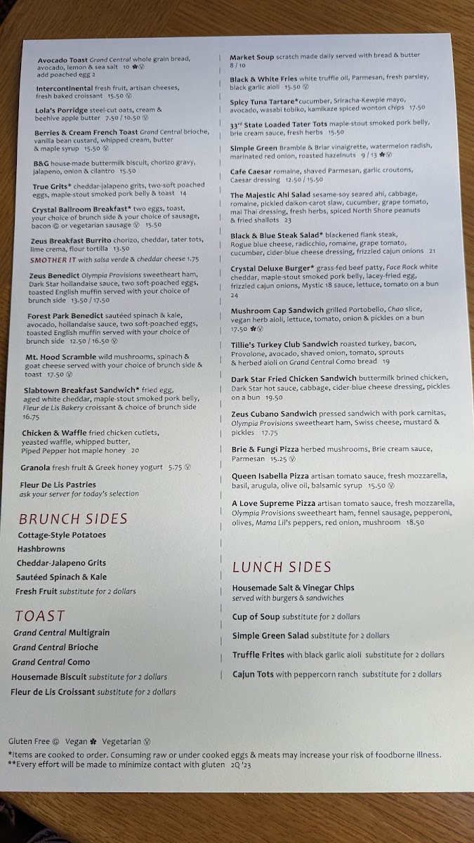 Grand Central whole grain bread, avocado, micro greens, lemon & sea salt, fresh fruit.